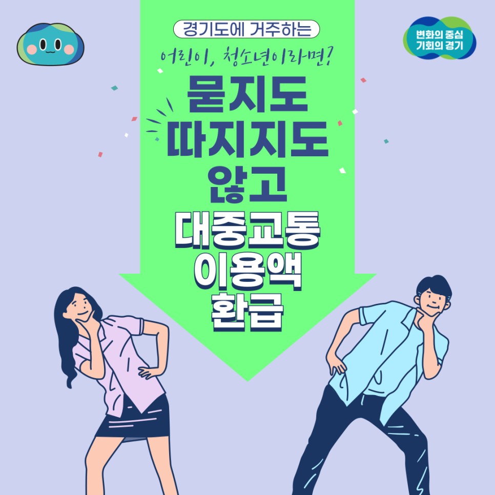 경기도 어린이·청소년 교통비 지원 사업은 경기도에 거주하는 만 6세~18세(초·중·고) 어린이 및 청소년이 대중교통을 이용할 경우 일정 금액을 환급해 주는 제도입니다.